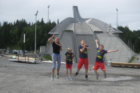 Strålende sol, men litt vind. Jeg løpe en tur på morgenen før vi slang oss på toget og tok en tur til Oslo. Der var bare eldstemann av guttene som hadde vært der før så han lekte guide på Holmenkollen og i Vigelandsparken. Det var mindre folk overalt enn jeg trodde (fryktet) det skulle være. Guttene hadde aldri tatt tog før så det var liksom på tide...hehehe...