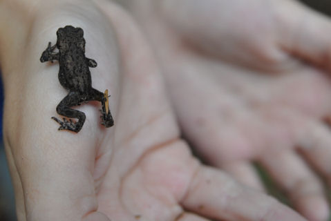 På gårsdagens skogstur møtte vi på denne karen - en liten minifrosk....så om det var en prins var det i så fall en liten prins. Siden jeg ikke følte for å kysse den lille krabaten lot vi ham hoppe videre på veien inn i skogen. Vi får håpe at noen andre tar på seg jobben med å kysse ham og se hvor det ender...hehehe