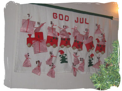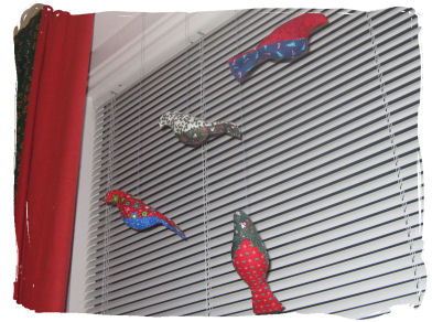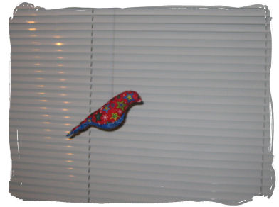 En av husets mange julekalendere i år er min egen fuglekalender. Jeg har sydd 24 fugler og skal henge opp en fugl hver dag frem til jul. Det ser litt stusselig ut med en fugl sånn helt for seg selv, men bare vent til flere kommer. Alle fuglene er ulike, men samtlige stoffer er brukt som både ryggdel og magedel... det gikk med etpar ekstra minutter for å få til det...hehehe