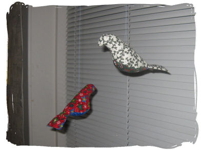 En hel liten flokk har fått plass i vinduet nå..og flere skal det bli. Det er ganske koslig å se på dem der de snurrer rundt i varmestrømmen fra panelovnen under vinduet. Jeg har planer om å få sydd litt i dag..i tillegg til bakingen. Det gjenstår bare å bestemme seg for hva man skal sy.