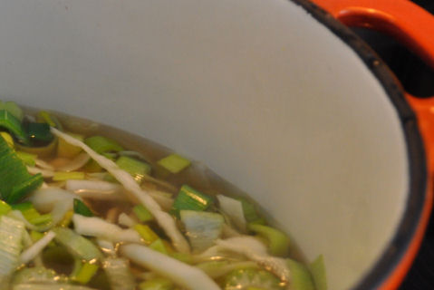 Når man driver med snømåking og ishakking trenger man noe å varme seg på.. en liter kjøttbuljong og grønnsaker etter smak - denne gangen purre, hodekål og stangselleri... rett før servering slenger man i middagspølser...(vi bruker lavkarbopølser kjøpt i Sverige)...eller laksefileer.... Kjapt, varmt og godt! ~~~*~~~ 27.februar