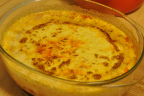 Hadde på litt pizzasaus, sopp, løk, ost, salami og spekeskinke...og masse oregano...og stekte de videre til osten var gylden...