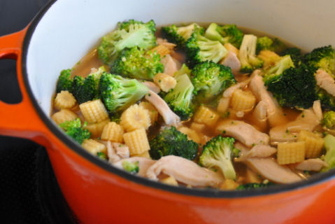 Lavkarbokyllingsuppe: buljong, kyllingfilet, brokkoli og minimais. Kok opp en liter buljong, ha i kyllingen (rå og strimlet), kok til kyllingen er gjennomkokt, ha i rå brokkoli. La det hele småputre til brokkolien er ferdig... ha i minimais rett før servering - den skal bare bli varmet opp. Veldig enkelt og veldig godt! ~~~*~~~ 9.februar