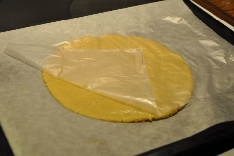 Jeg fikk to fine, tynne pizzabunner av denne. Litt seig å jobbe med så bruk en pose mellom deigen og fingrene...da er det null problem. Stekte først bunnene på 175 grader i 10 minutter og lot de avkjøles litt før jeg hadde på fyllet...