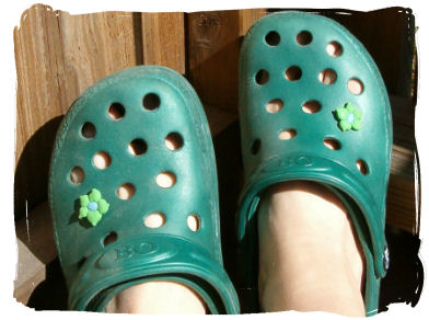 Da var det igjen den tiden på året da jeg må ut og kjøpe nye Crocs. Jeg er helt enig i at de ikke akkurat er pene å se på, men her går komfort foran skjønnhet. Crocs er nydelig å gå med...og i størrelse 35 er de ikke sååååå gale å se på. Etter å ha trålet gjennom 4 skobutikker hvorav ingen hadde min størrelse i orginale Crocs fallt valget på denne etterligningen - Bo. De er helt greie, men like fine på beina som de orginale er de ikke...så jeg må nok ut på nettet og bestille meg et par eller to...men intil jeg får somlet meg til det får disse holde.