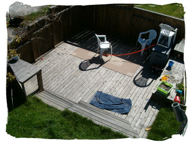 Her er en av uteplassene i hagen vår...akkurat nå ser den kanskje ikke så innbydende ut. Guttene har visst lekt sandkokker og selv renser jeg et teppe - som av en eller annen mystisk grunn har blitt liggende under den nyinnkjøpte hoppestrikken og etpar stoler. Mye rart skjer når man snur ryggen til. Hva det håndkleet gjør der har jeg f.eks ikke peiling på, men jeg mistenker at det har noe med guttenes vasking av etpar sykler å gjøre. Jaja, nå er det iallefall på tide å fikse opp der sånn at vi kan nyte nypresset lemonade og nystekte kjeks....*drømmer* Så er det bare å brette opp ermene og gå i gang. Lurer på om ikke vi skal spandere på oss noen nye sommermøbler i år. Det hvite plastsettet vi kjøpte på Jysk for å ha MIDLERTIDIG da vi flyttet inn her for 6½ år siden har av en eller annen merkelig grunn aldri blitt byttet ut...selv ikke da vi bygget denne plattingen året etter. Ok, jeg innrømmer det - vi er treige...men så gikk det liksom greit å sitte i de stolene og bruke det bordet også da. *fniser* Nå er det uansett på tide å finne noe nytt...så jeg får vel saumfare reklameblader og butikker etter det ultimate hagesettet.... og så trenger vi kanskje noen blomster. ~~~*~~~ Høyt henger de...