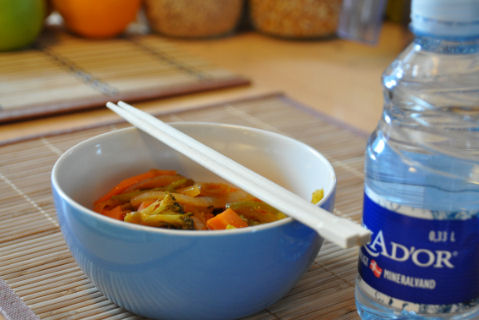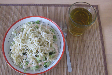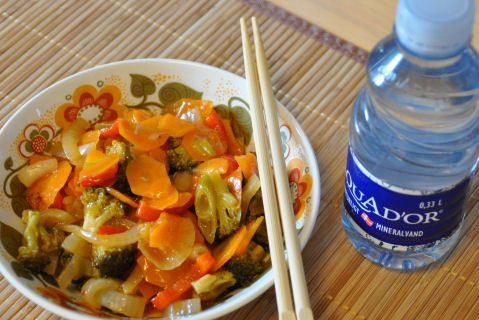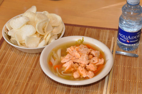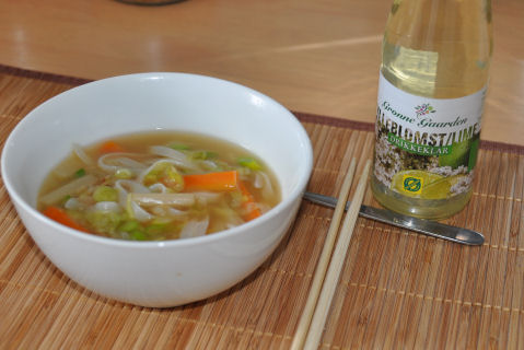 Dagens lunsj og middag var NAM! Ble så inspirert da jeg så på Chings Kjøkken på BBC at jeg bare måtte ha noe sånt i dag. Mannemannen og guttene likte det også...så dette skal vi nok ha flere ganger. Kokte opp 1½ l grønnsaksbuljong og hadde i gulrøtter, asparges og kinakål. Lot det få et oppkok før jeg hadde i risnudler. Vårløken gikk i kjelen rett før hele suppa var klar. Stekte opp laksefileer i stekepannen - helt enklet krydret med salt og pepper. I morgen skal jeg ut og titte på grønnsaksjuicepressere...eller hva det nå heter...hehehe ~~~*~~~ Lunsj i det grønne...