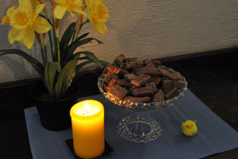 Vi tok en liten tur til Sverige i dag... overraskende lite folk, men de sa at det hadde vært masse folk tidligere på dagen...så vi var nok bare heldige med valg av tidspunkt. Fikk kjøpt litt sjokolade - faktisk ikke mer enn det som sees på bildet. Nå er alt klart til påske...kalkunen er handlet inn, påskeeggene fyllt og etpar kyllinger har funnet veien til stua. Blir det sol så er det toppers, men om været blir som meldt så skal vi nok finne på noe inne også. ~~~*~~~ Påskemandag...