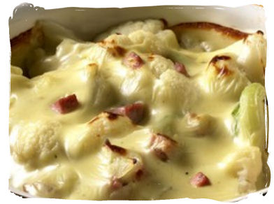 4 porsjoner blomkålmos 1 løk 1 boks sopp kjøtt (pølse, kylling osv) 2 dl revet ost Ha blomkålmos i bunnen av en ildfast form. Stek løk, sopp og kjøtt. Legg det på mosen og strø osten over. Gratineres på 200C til osten er gylden.