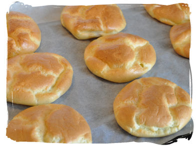 Alt slenges i mixern og kjøres til det blandes. Sett røren på platen og stek på 150 grader i 10-15 minutter. Ha evnt. sesamfrø på halvparten av bollene. Røra gir mellom 7-9 karber alt etter som hvilken ost man bruker.