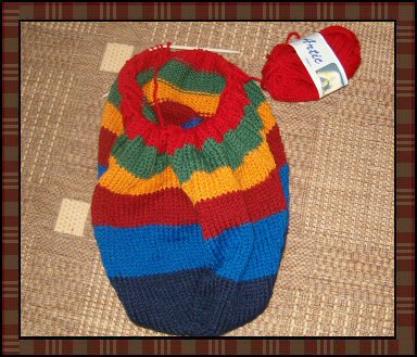 Her går det unna! Har begynt på det fjerde nøstet. Jeg strikker av restegarn så nøstene er ikke helt hele, men det er ikke mye om å gjøre.