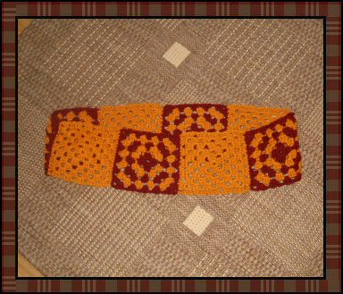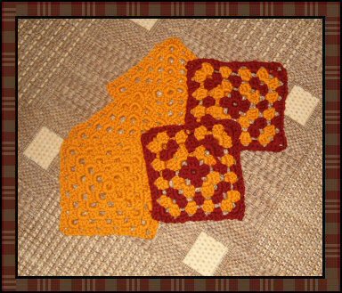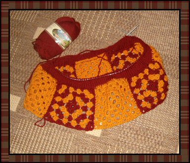 Mormorrutene er sydd sammen. Nå skal jeg legge opp masker rett fra mormorruteborden. | |